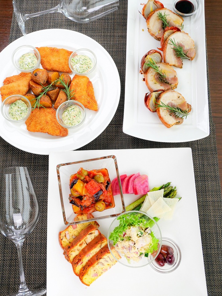 月替わりの料理がお楽しみ頂ける他ブッフェボードには約40種を超えるお料理、コンディメント、デザート、ドリンク等が並びます。