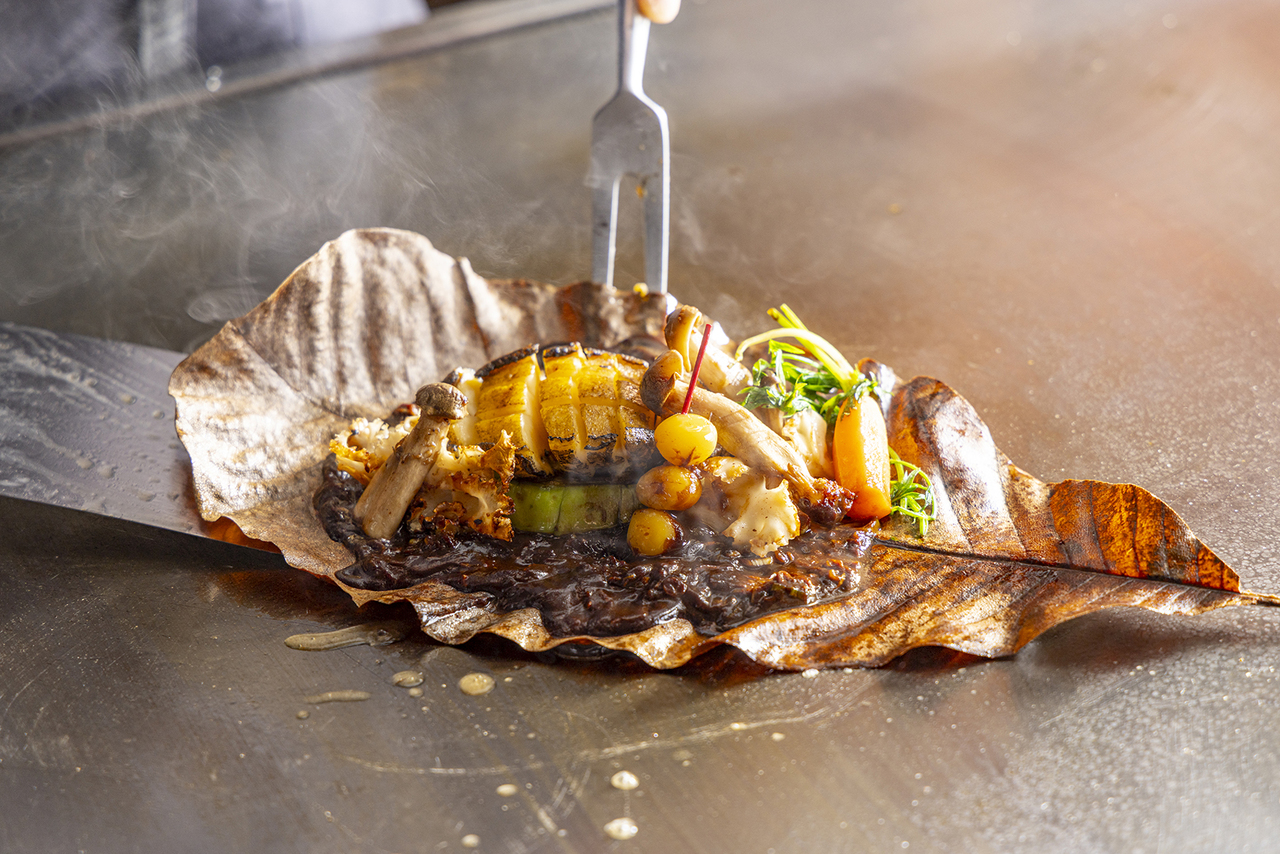 本コ-スでは【 鮑の鉄板焼き、もしくは 伊勢海老の鉄板焼き】のうちお好きなものを1品お選びいただけます。また、食材の仕入れのため、事前にご希望をお伺いしております。