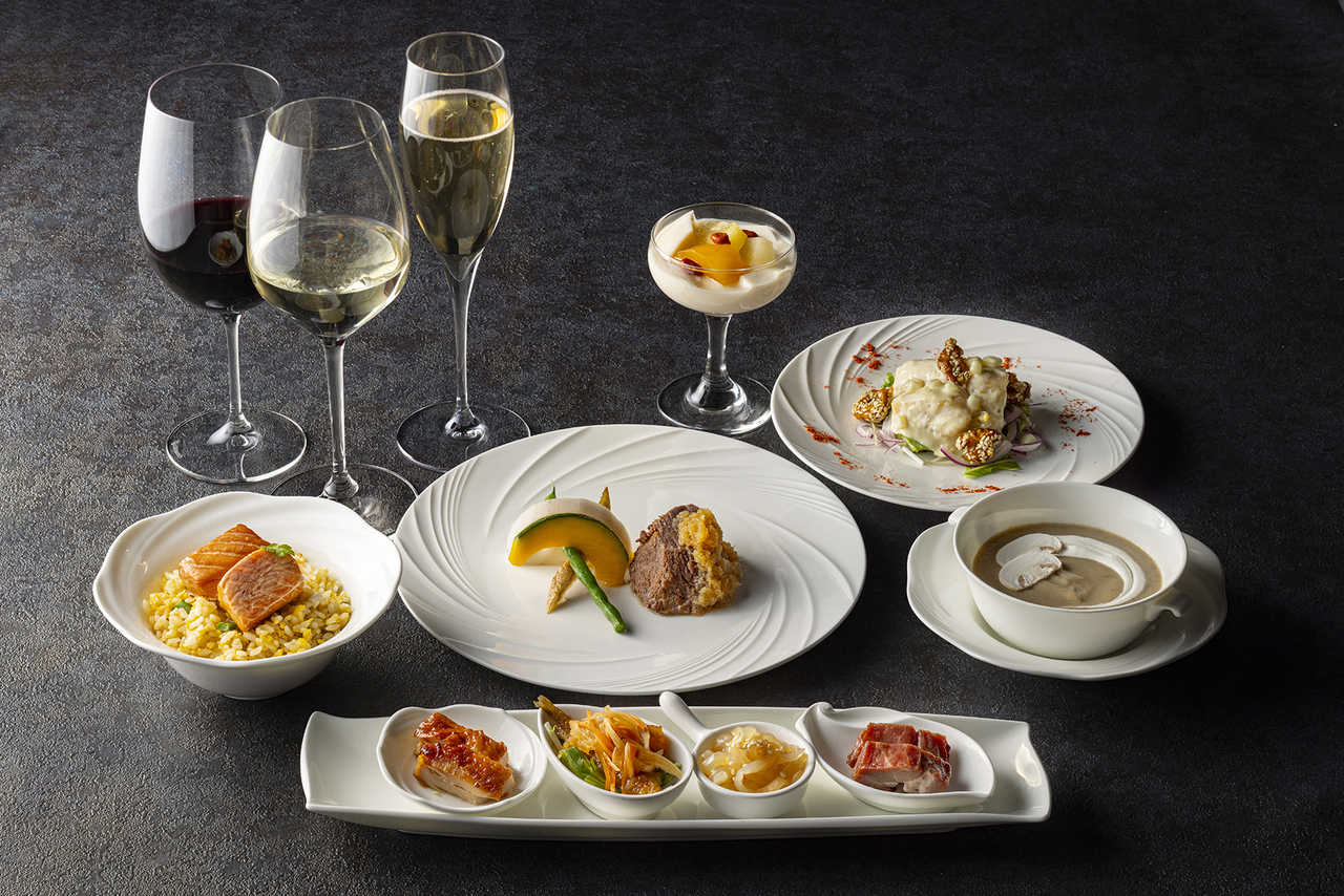 ・Omi duck farce with shiitake mushrooms / Grilled Shinshu Golden Shamo chicken with Karuizawa Atelier Fromage blue cheese / Coffee-flavored roasted Kurobe Meisui pork / Chinese-style burger with Sado beef from Niigata / Blowfish escabeche with Dogo lemon jelly / Apple jelly with “Ringo Bijin” from Shinshu Tateshina Farm