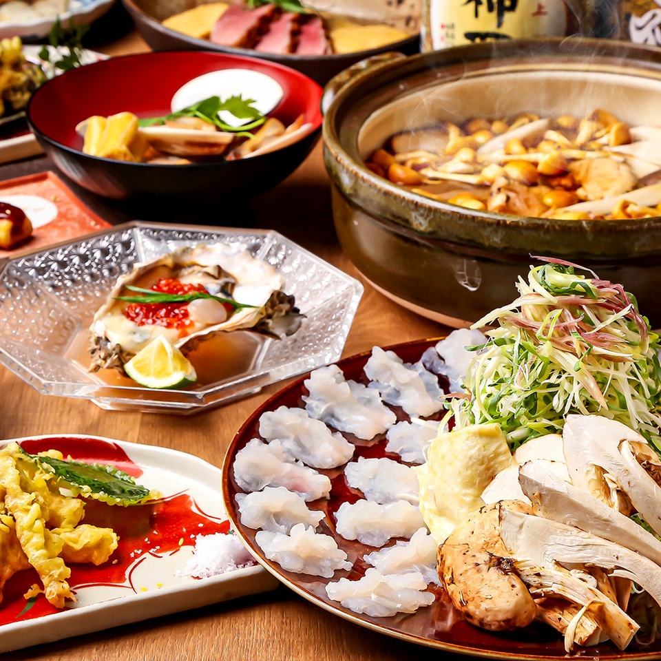 "Jurakudai"'s cheapest and most affordable plan! Main dishes include Kyoto duck skewers and a sashimi platter. ☆★ A comprehensive menu of nine dishes, including grilled and fried dishes, and Kyoto soba noodles for the final course. For an additional 500 yen, you can enjoy all-you-can-drink sake from Sasaki Brewery, with over 13 varieties. Perfect for company or friend gatherings. ☆★