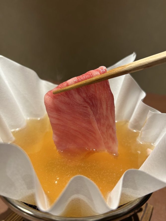 For an additional 3,000 yen per person, you can upgrade from Omi beef round to Omi beef sirloin. (*We ask that all customers order the same.)