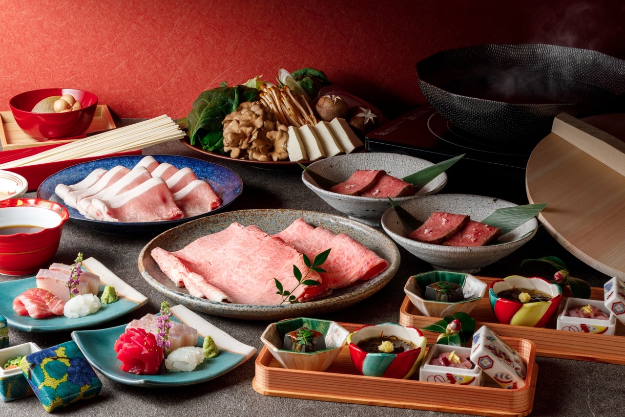 Shabu-shabu Specially selected Yamagata Kuroge Wagyu beef rib roast Noto pork loin Seasonal vegetable platter