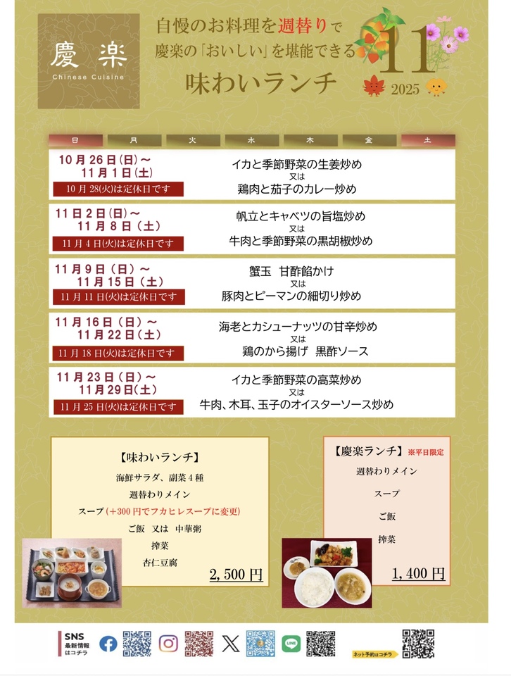 คำถามสำหรับ (12月)味わいランチ・慶楽ランチ