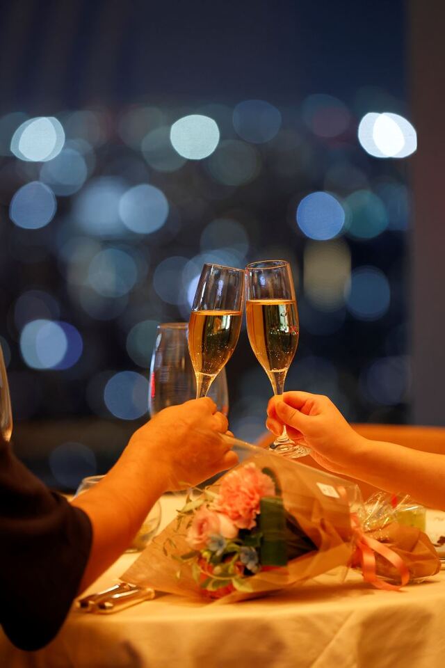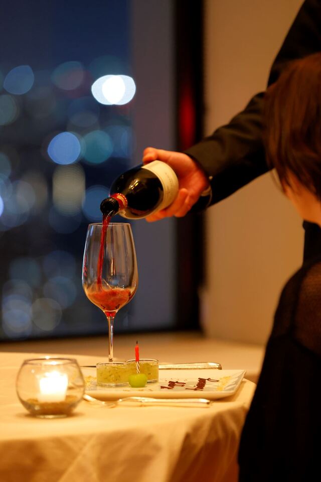 地上210mの眼下に広がる東京の美しい夜景に囲まれながら、聖なる夜を華やかに演出する本格フレンチとソムリエ厳選のワイン。