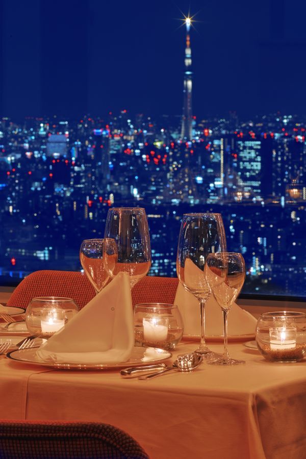 地上210mの眼下に広がる東京の美しい夜景に囲まれながら、聖なる夜を華やかに演出する本格フレンチとソムリエ厳選のワイン。