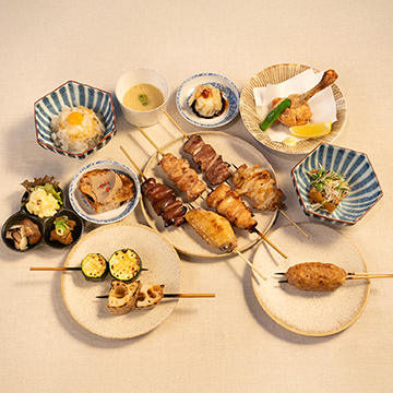 This course offers a casual way to enjoy yakitori expertly grilled by the chefs at Omino