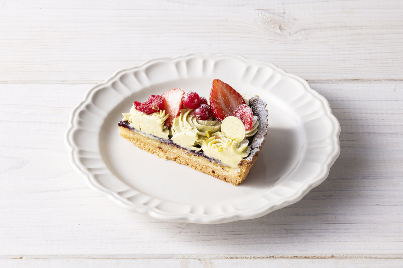 ザ・パティスリー自慢の配合にこだわった地元の牛乳と卵でつくったオリジナルカスタードをタルト生地にたっぷりのせ、群馬のブランド苺「やよいひめ」など、地元の苺をぎっしり飾り、アクセントにピスタチオをトッピングしました。