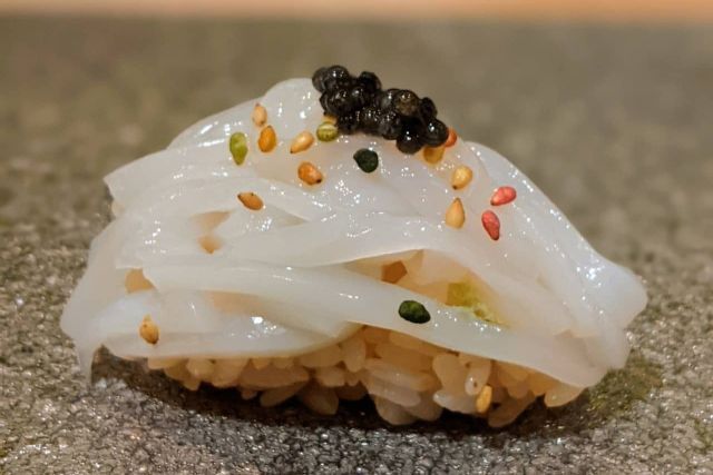 石垣島出身の大将が、伝統的な江戸前の技法にオリジナルの手間を加えた他では味わえない鮨を提供しています。 ゆったりジャズを聞きながら沖縄の食材を使った少し変わった和食のおつまみや、赤酢のシャリを使った小さなお鮨と季節の日本酒が楽しめる大人の隠れ家です。