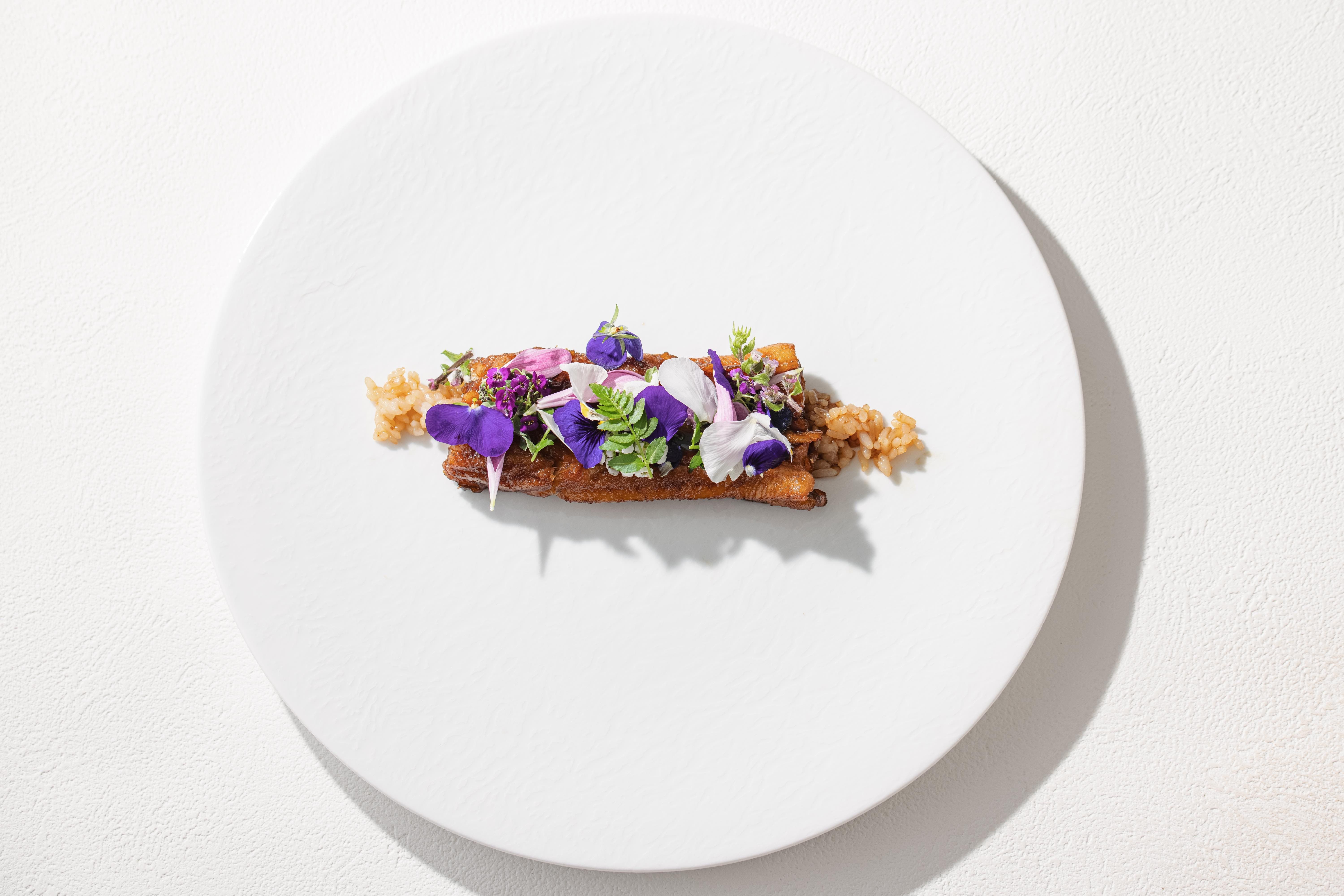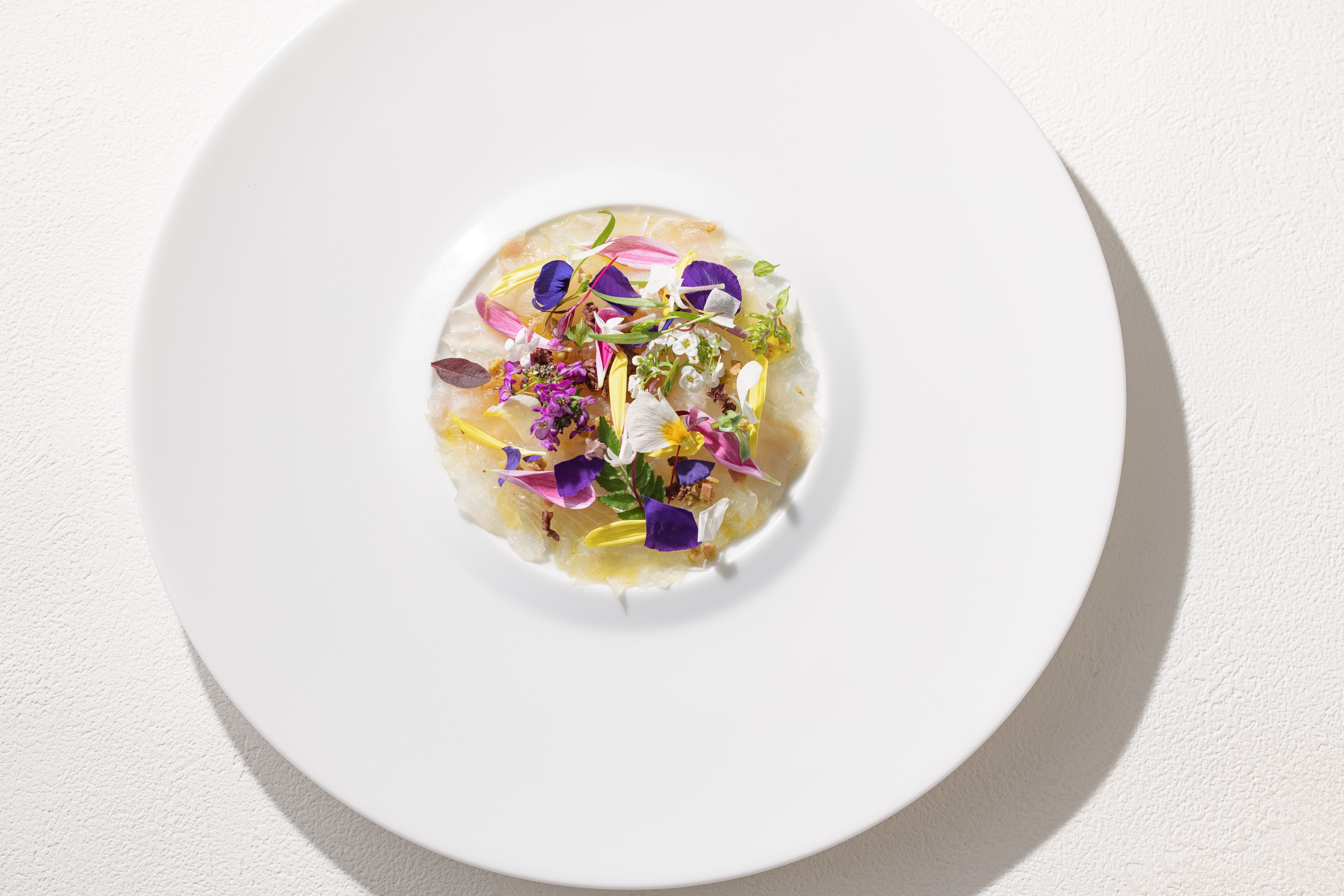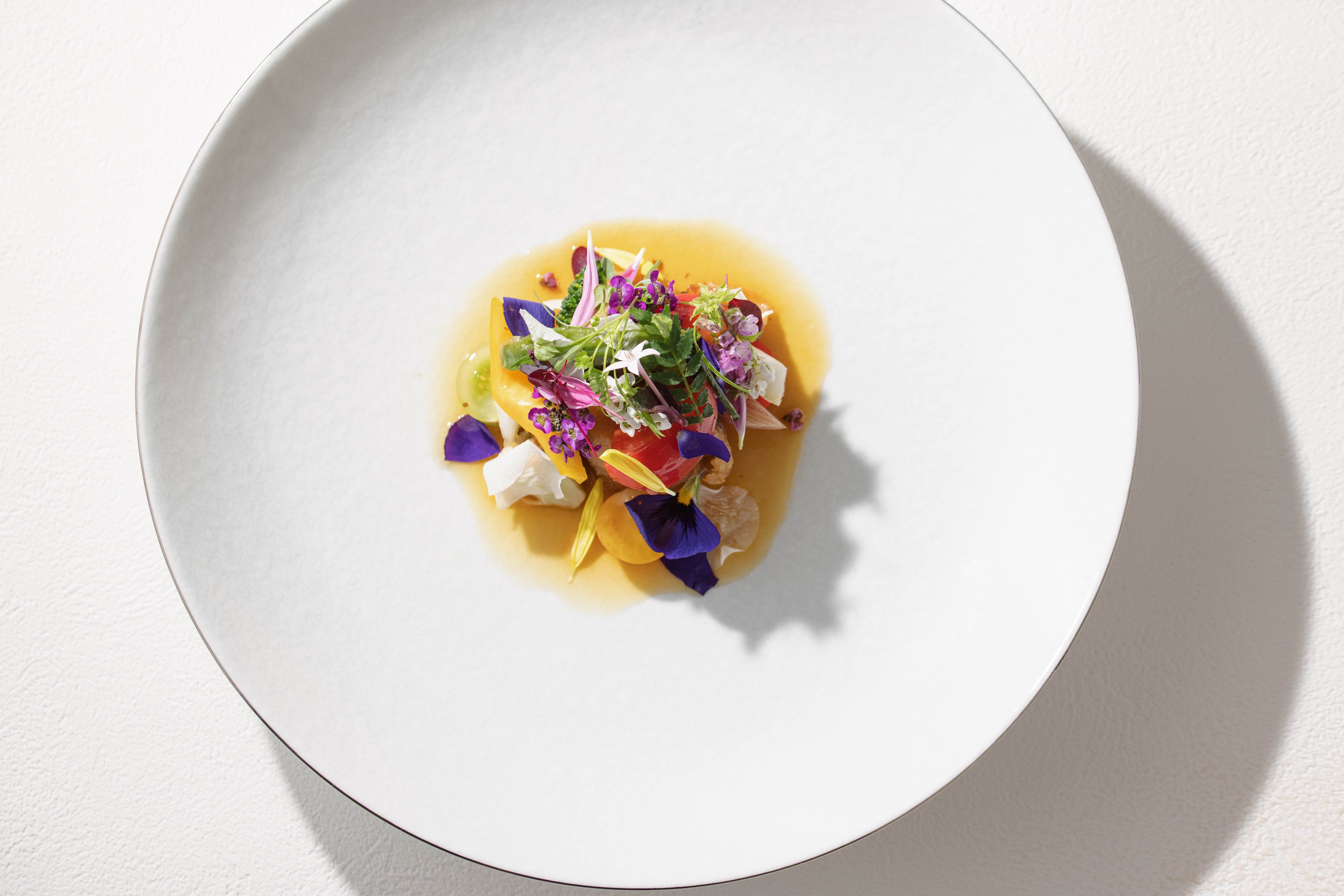 One Day's Menu ・Foie Gras Macaron ・Cod Milt, Parmesan Risotto ・Splendid Alfonsino, Green Onion, and Fennel Flower ・Zucchini, Shrimp, and Crazy Pea ・Moules, Honey, Champagne Vinegar, and Fromage Blanc ・Squid, Wakame Seaweed, Cucumber, Rausu Kelp, Viola, and Alyssum ・Herb-Style Chestnuts ・Foie Gras and Crispy Nuts ・Returning Bonito and Japanese Water Dropwort ・Wagyu Beef and Trumpet Mushrooms ・White Sesame Blancmange ・Red Delicious Apples and Onion Sorbet ・Petit Fours ・Café