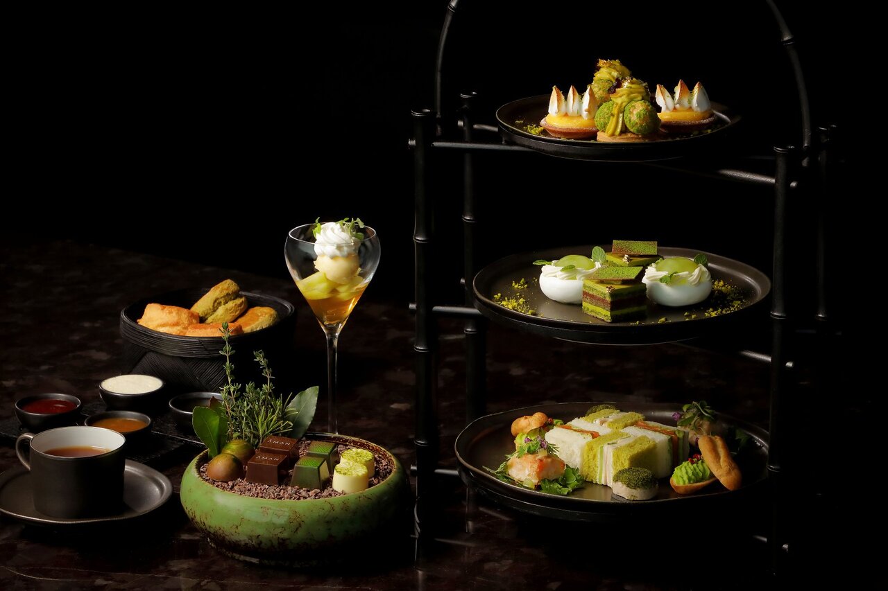Enjoy a luxurious afternoon tea at The Lounge by Aman, where you can take in views of Tokyo while savoring the theme of fresh spring greenery.