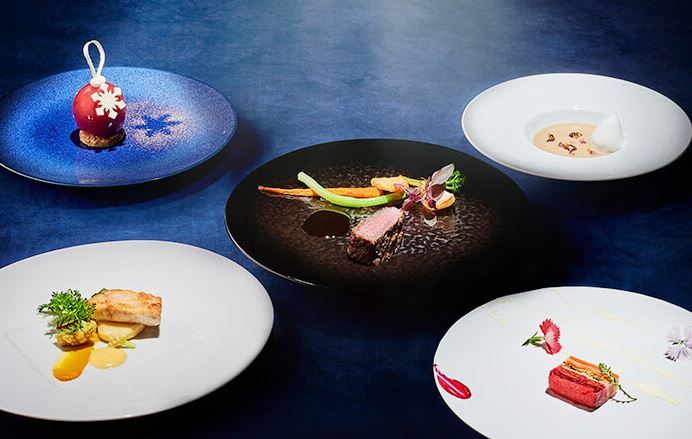 ホワイトモンブラン/竹炭シュークリーム/コーヒーとブランマンジェ/蜂蜜レモンのジュレ/シャンパンジュレ