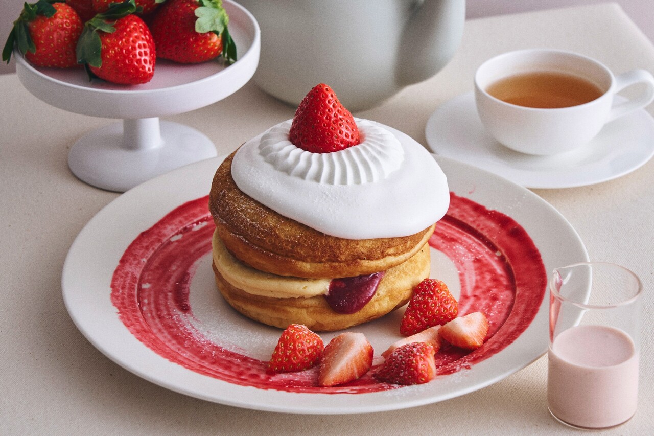 [Direct from the Farm Strawberry Fair] Weekday-only special free drink set / "Asuka Ruby" strawberry shortcake pancakes with fermented strawberry butter sauce