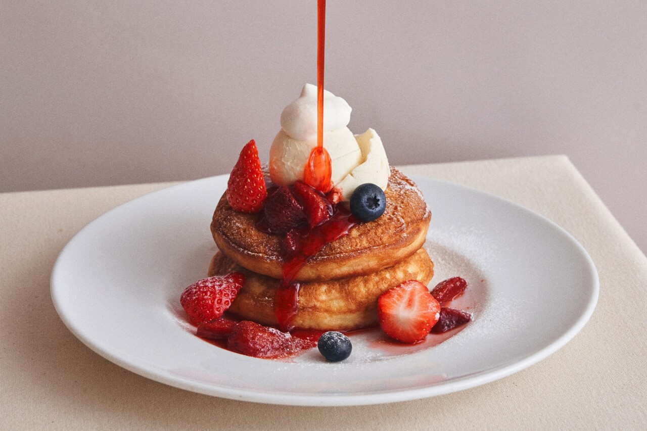 Signature pancakes that we recommend with confidence. Fluffy and chewy, freshly baked pancakes go perfectly with sweet and sour berries and cream cheese! Enjoy with plenty of berry sauce that uses cinnamon as a secret ingredient.