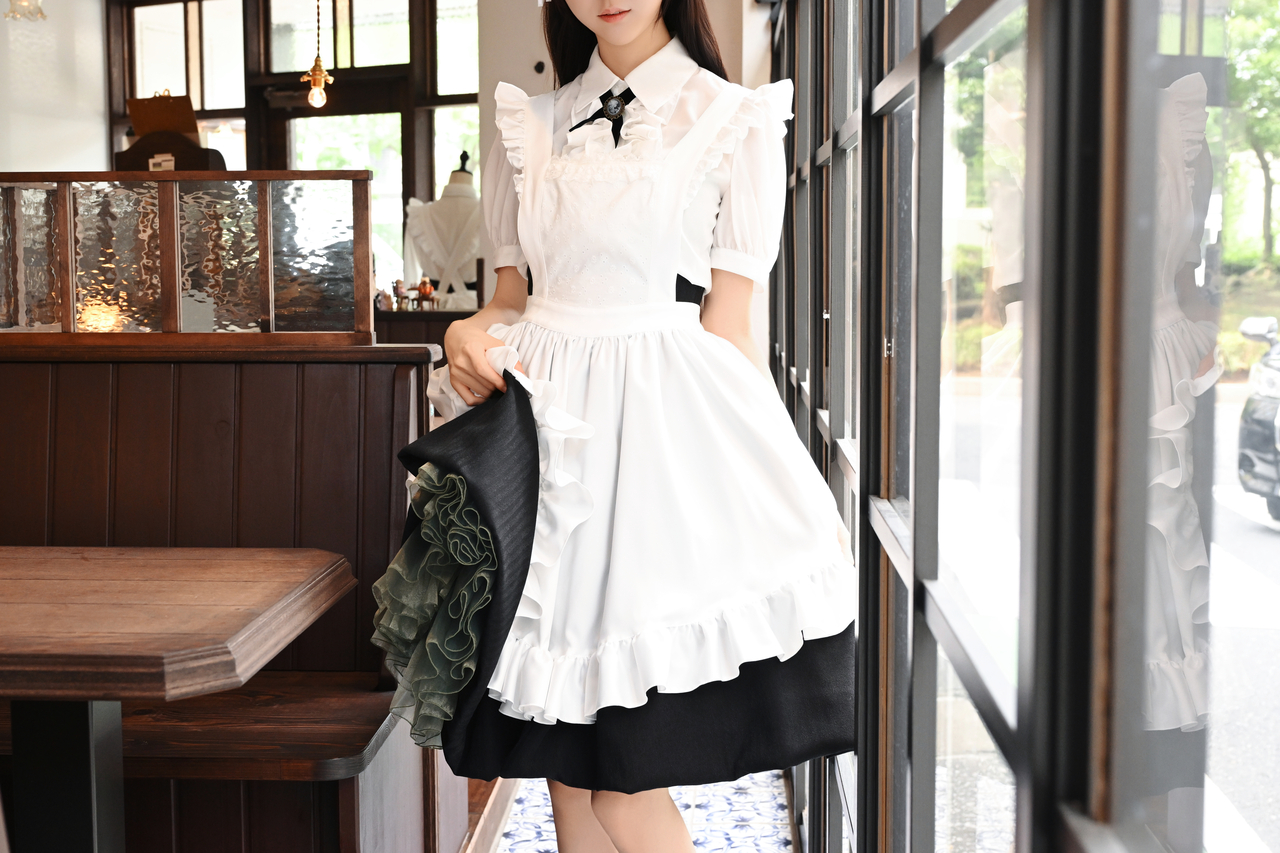 (試着室での試着ではなく、姿見の前でヘッドドレスやエプロンなどをお召し物の上からお試しいただくかたちでのサービスです)