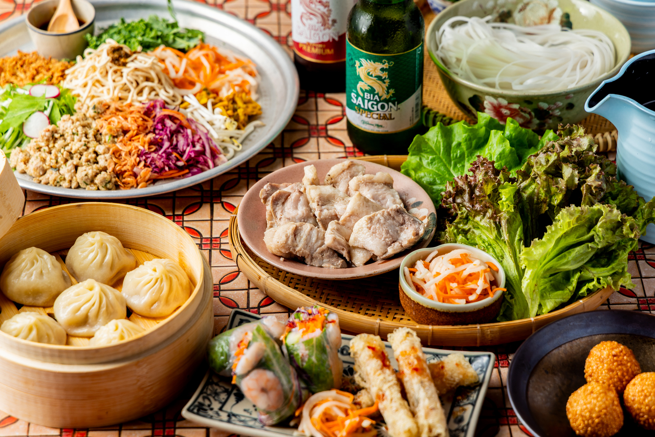 ①『レモングラスチキン』②『薬膳豆乳』」③『トムヤムクン』の3つのうちからスープをお選びください。1~4名様は1種類。5名様以上は2種類お選び頂けます。