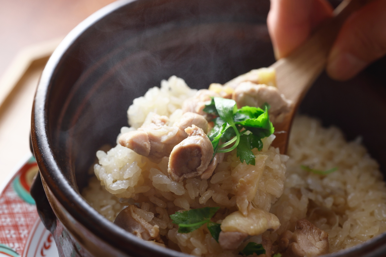 Tanba Chicken and Burdock Rice, Miso Soup, Pickles