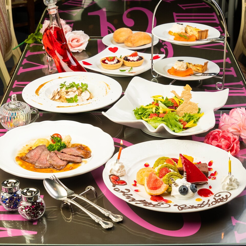 【アニバーサリー】絵本の国のキャラクターファンタジーディナーコース【うさぎケーキ・乾杯スパークリング付き】