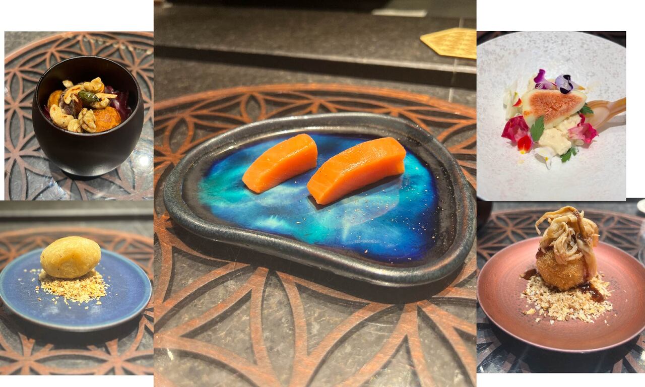 当店は毎月ジャンルに捉われない”テーマ”を設定し、嚙む度に食材の物性変化と味覚の構成比が変わっていくお料理です。