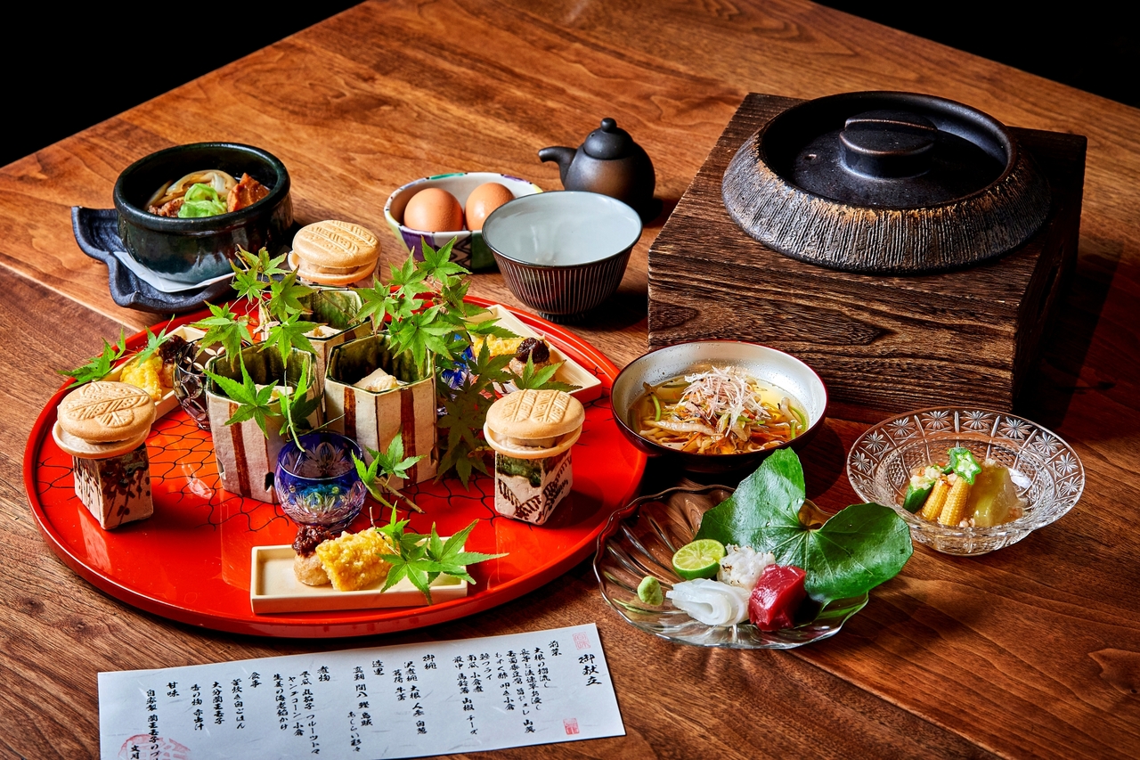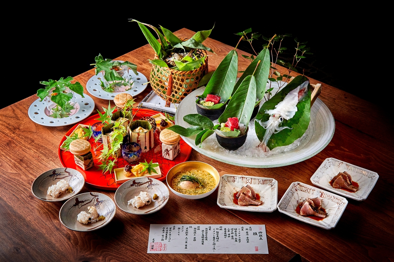 ・先付・前菜・椀・造り盛り・季節の煮物・釜炊きご飯・デザート