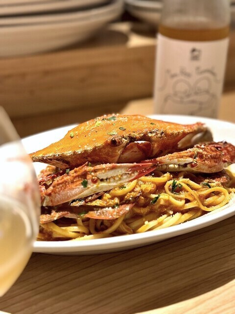 A hidden, grown-up restaurant with a relaxed atmosphere. Please enjoy the generous space and our food at your leisure. We offer Italian dishes prepared simply yet boldly using carefully selected seasonal ingredients and handmade pasta, along with an extensive wine list. We recommend the spacious counter seating that conveys the warmth of wood. Comfortable table seating and semi-private rooms (for 4–8 guests) with a sense of privacy are also available.