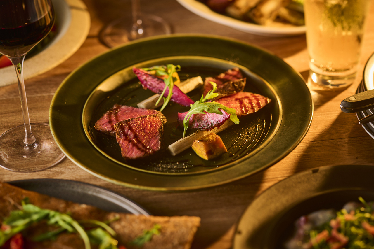 The main dish is grilled A5-grade Japanese Black Wagyu beef, along with fresh fish carpaccio, homemade pâté de campagne, duck galette, and shrimp bisque cream pasta. A total of 10 dishes.