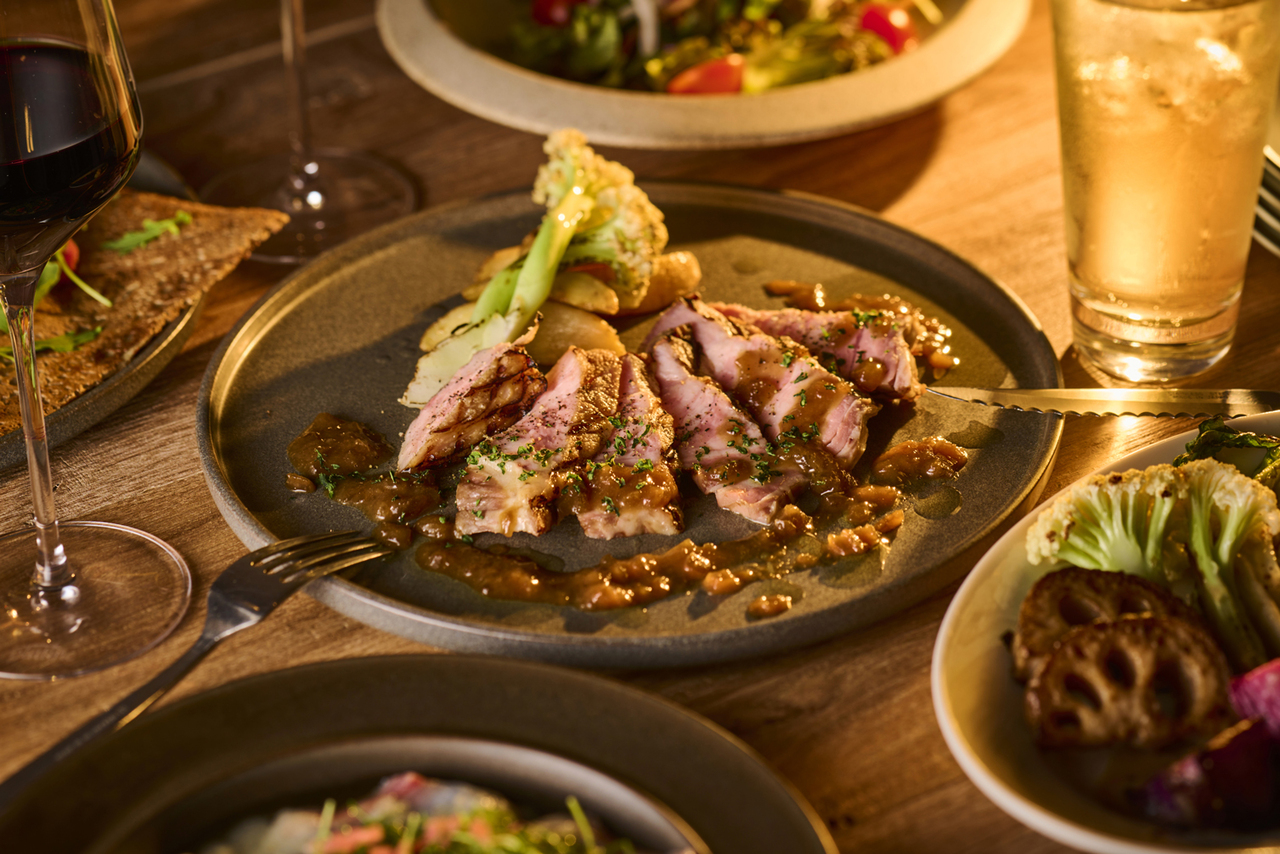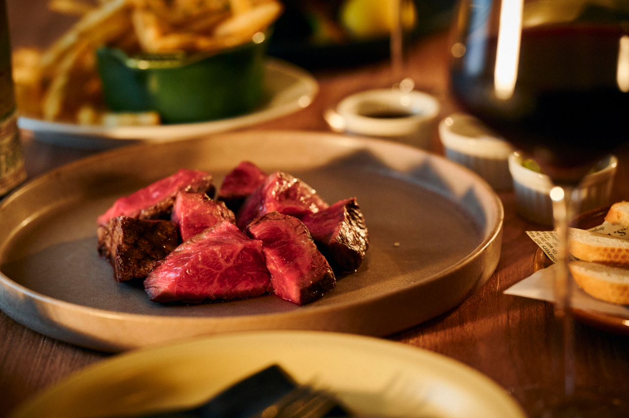 A special lunch-only course featuring Hearth's galette, A5-grade domestic Wagyu beef, and a glass of sparkling wine for a toast.