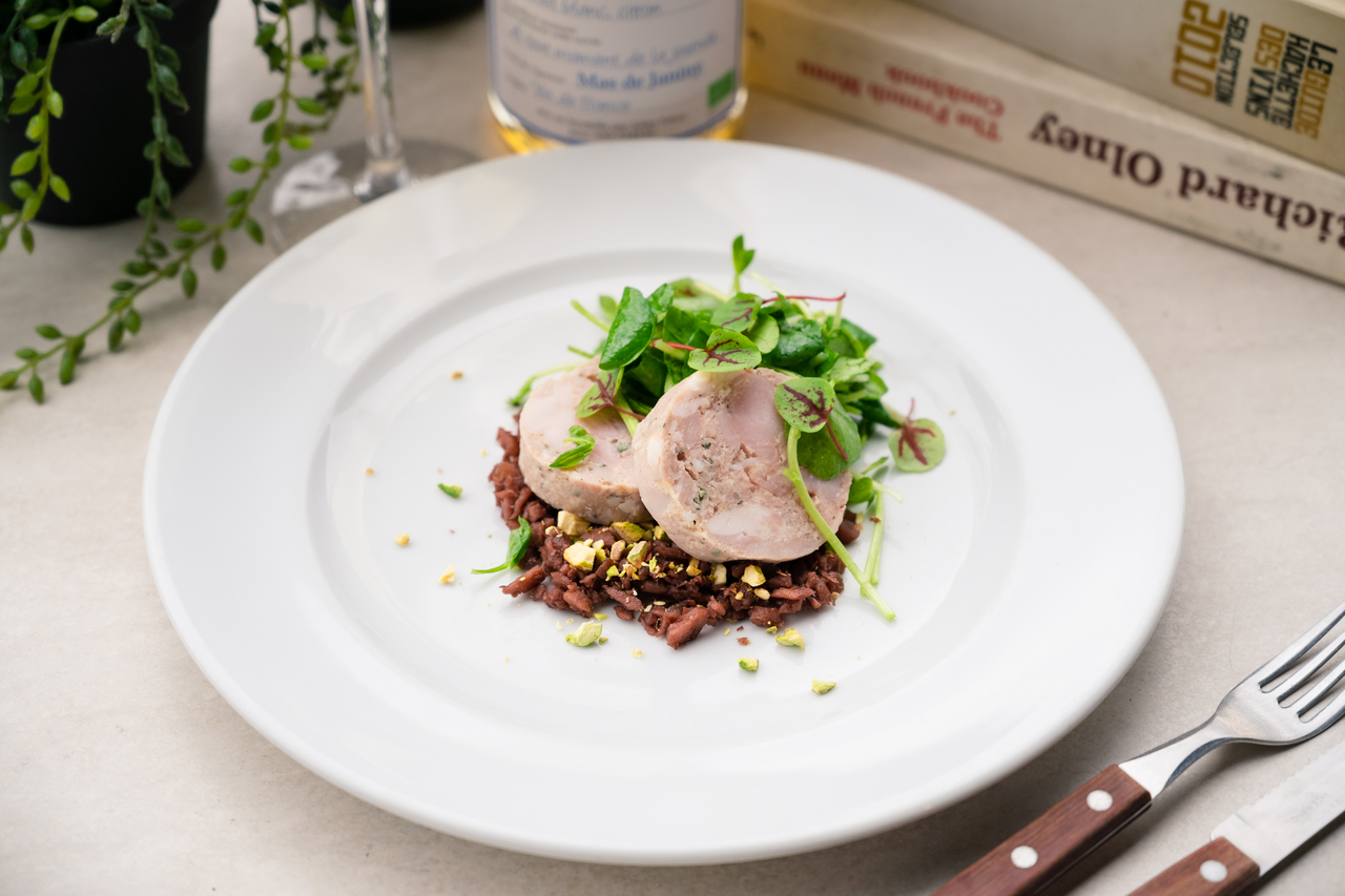 丹波黒鶏のパテ 新ゴボウのアグロドルチェ
