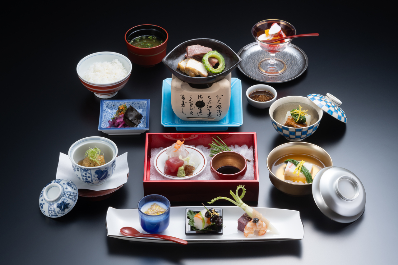 先付 造り 天麩羅 煮物 吸物 御飯 漬物 果物