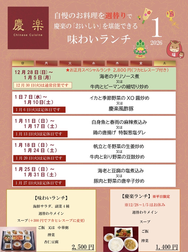 Mga Tanong para kay (12月)味わいランチ・慶楽ランチ