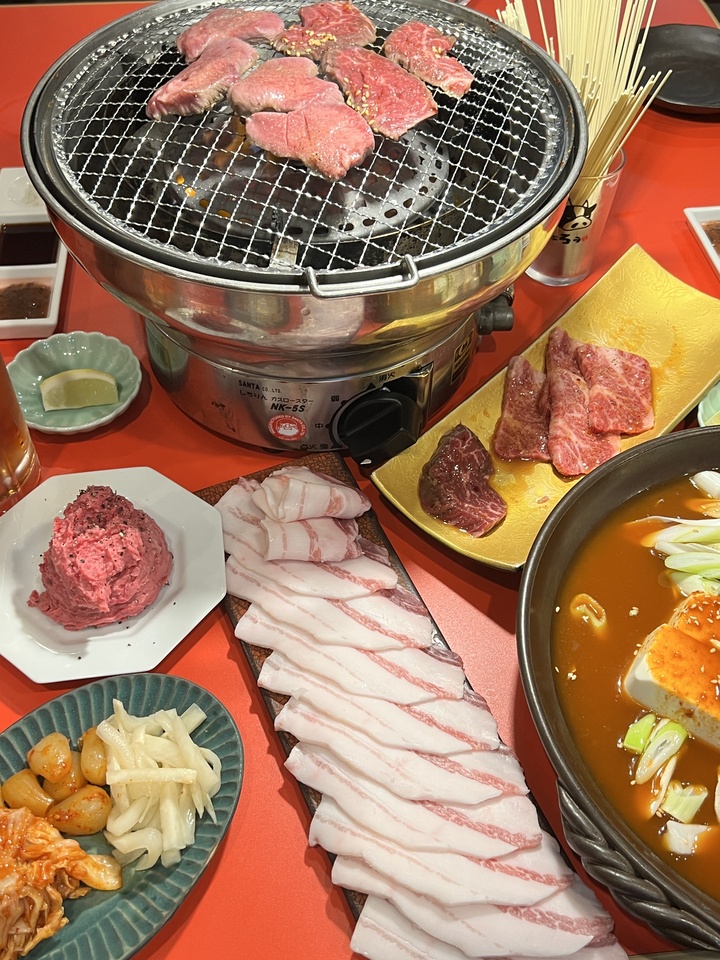 焼肉焼いたあとに鍋わ食べるコースです。