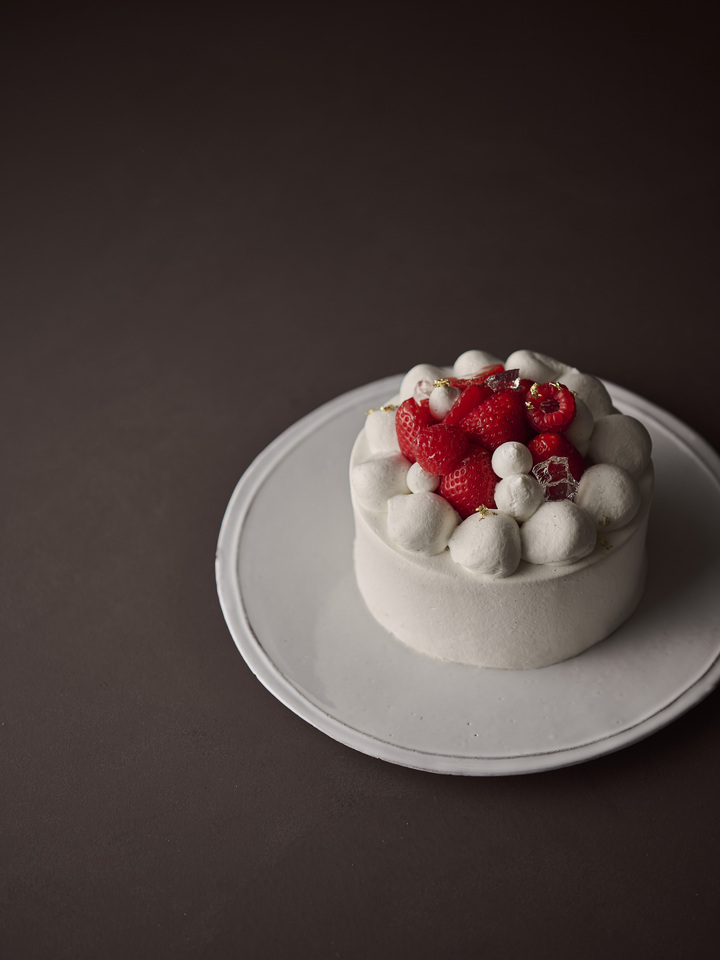 聖夜に降り積もった真っ白な雪面に、真っ赤な苺の光が降り注ぎます。溢れんばかりのフレッシュの苺と苺のコンポートをサンドしました。しっとりとしたジェノワーズとマダガスカル産バニラシャンティとの相性は王道の味わいです。