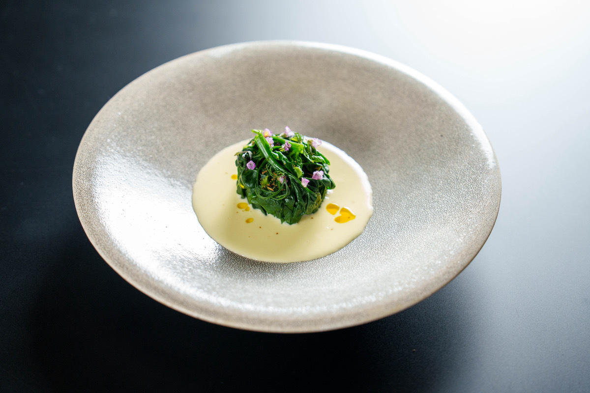 <Amusee-bouches>A dish with a greeting from the chef ◆ Premier Entree Pressed spring vegetables and Fukui famous water salmon, with chrysanthemum coulis ◆ Dinner Entree Royale Nature foie gras consommé with lobster and real wasabi ◆ Poisson Roasted Wakasa spotted grouper with aromas of herbs and seaweed, Mediterranean vegetable croquant ◆ Sorbet A palate cleanser sorbet made with Fukui plums ◆ Viand Charbroiled branded beef fillet, petite salad of truffle-scented pompompurée and watercress ◆ Avant Dessert A small pre-dessert ◆ Dessert ~ Vacherin ~ Marinated red fruits and beets with a hint of rosehip air, red wine reduction Homemade smoked persimmon pain de campagne //Mignardise Small sweets //Boissons after dinner After-meal drinks *The photo is for illustrative purposes only.
