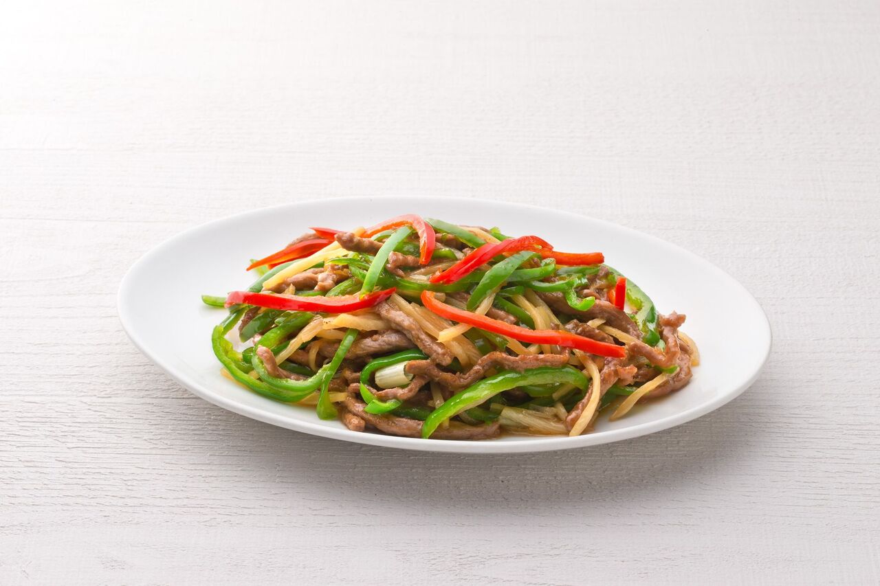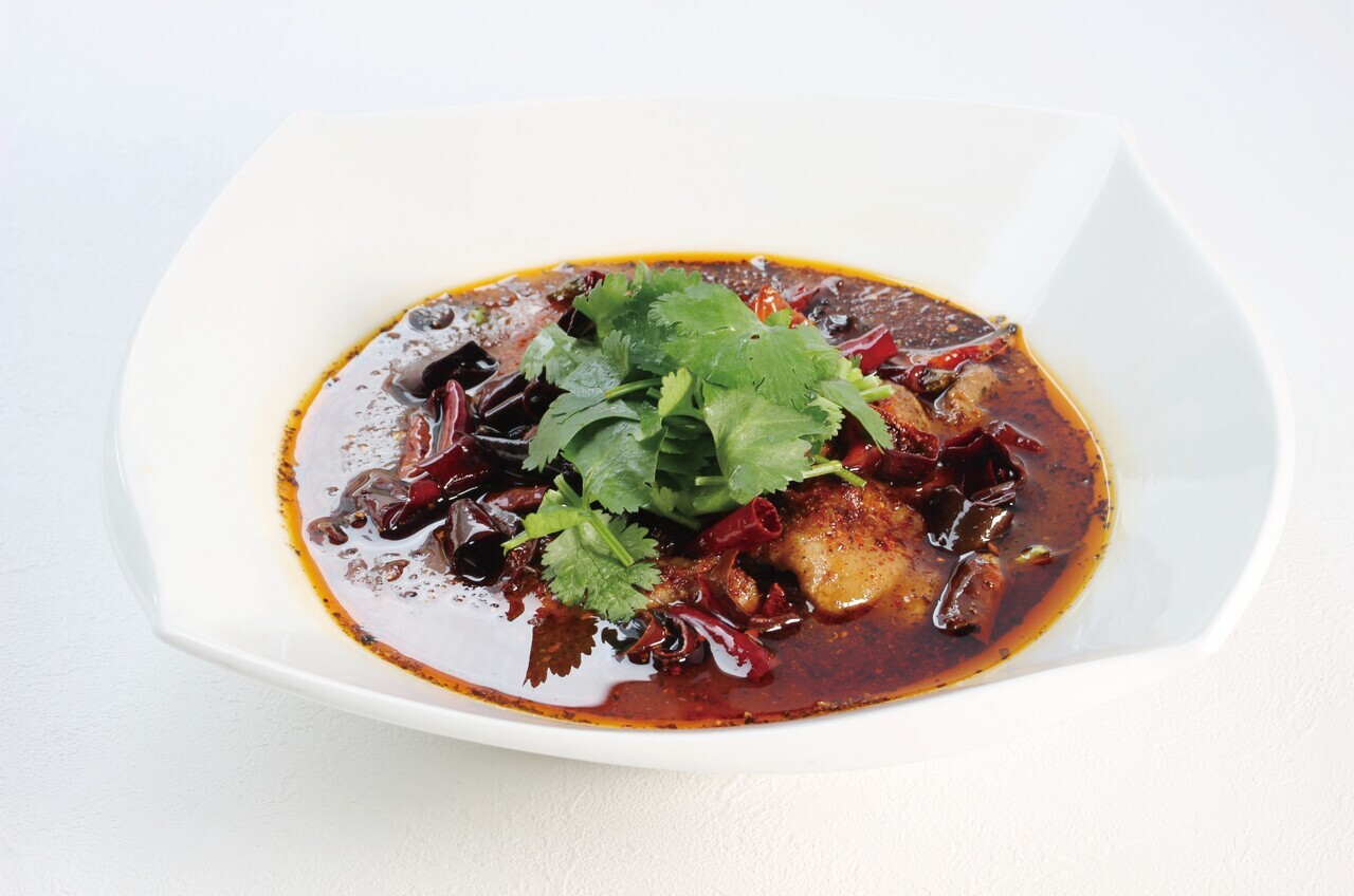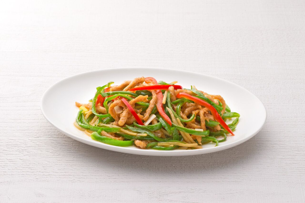 四川省で愛されている鶏肉の炒めを県産地鶏「富嶽白鶏」で仕上げました。芽菜(ヤーツァイ)の独特な味わいをサンチュに包んでお召し上がりください。