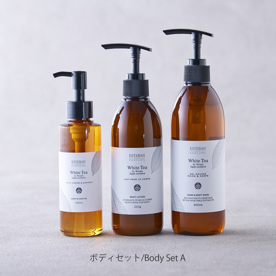 We have prepared a special set at a special price that will allow you to fully enjoy the original scent of "White Tea" that welcomes guests in the Westin Hotel lobby.