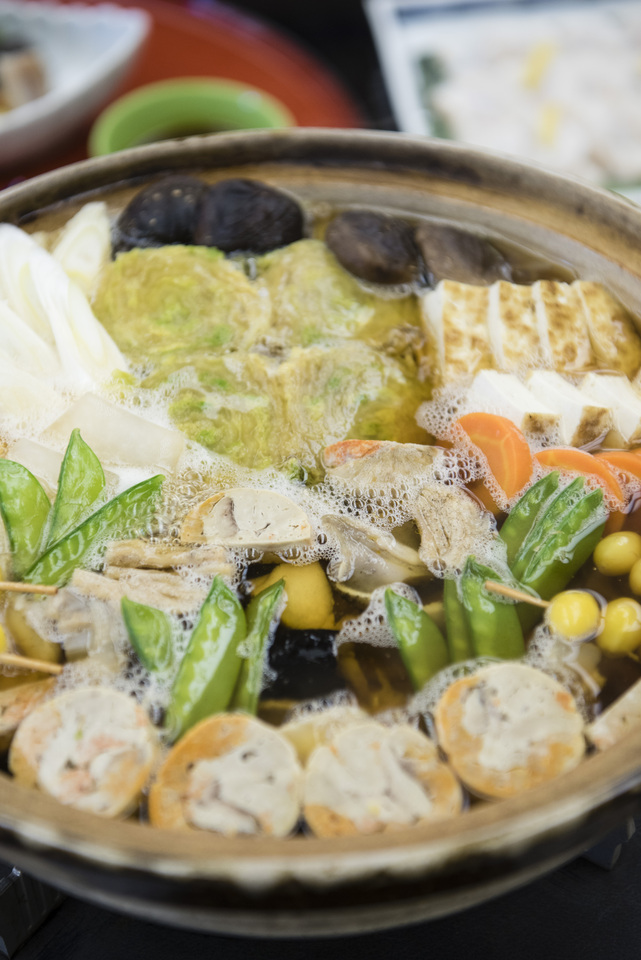 The authentic monkfish hotpot is cooked with rich liver miso. This is a seaside offering that is different from the main store.
