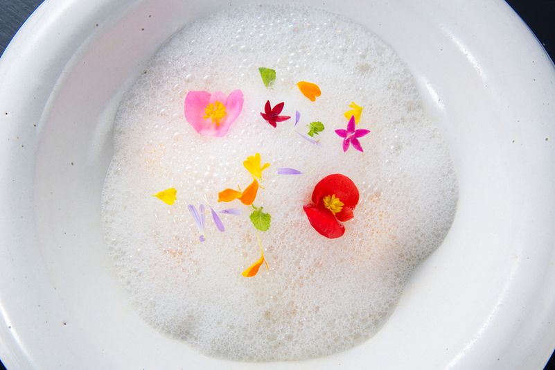西麻布にあるフレンチの名店『レフェルヴェソンス』の姉妹店である「ラ・ボンヌターブル」。『レフェルヴェソンス』と同じ食材を使用していながら、よりカジュアルにフランス料理を楽しむ事ができます。店内は天井が高く開放感があり、木の床に梁とシンプルな内装です。スタッフはデニムシャツにジーンズ、店内を流れるBGMは70年代ロックと、一風かわったフレンチレストランです。メニューは2種類のプリフィクスのみで、どの料理も素材の状態に合わせた調理方法が駆使されており、素材の味がいかされています。