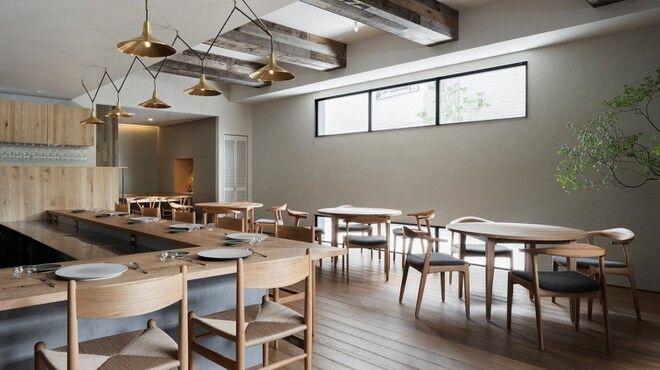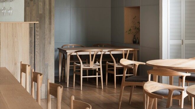 天然木を使ったテーブルやチェア、インテリアなど木の温もりが感じられる店内は、シンプルで落ち着いた雰囲気です。オーナーシェフのルーツである愛知県や長崎県五島列島などの食材を活かし、新しいスタイルのフレンス料理を、カジュアルな雰囲気の中で味わえます。完全予約制なので特別なランチやディナーとしてもご利用頂けます。