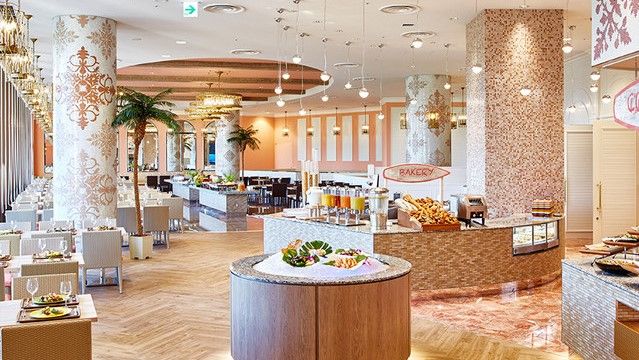 Enjoy a variety of dishes, including domestic beef steak, beef braised in red wine with mashed potatoes, paella, crab alumette pie, and Santa’s sushi.