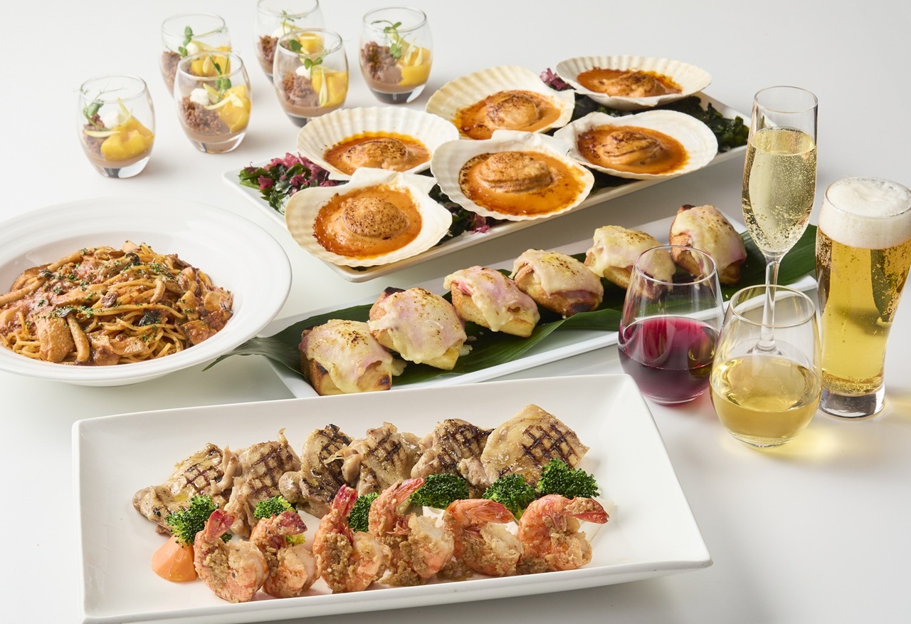メインディッシュに加え、お酒とのペアリングも楽しめる2種感の揚げたて「フレンチフライ」をはじめとする約30種の多彩なビュッフェメニューをお楽しみいただけます。