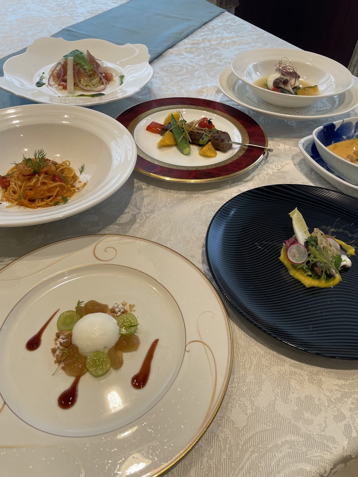 前菜/スープ/パスタ(2種類より1品お選びいただけます。)メインディッシュ(魚・肉料理どちらかお選びいただけます。)/パン/デザート/コーヒー・紅茶