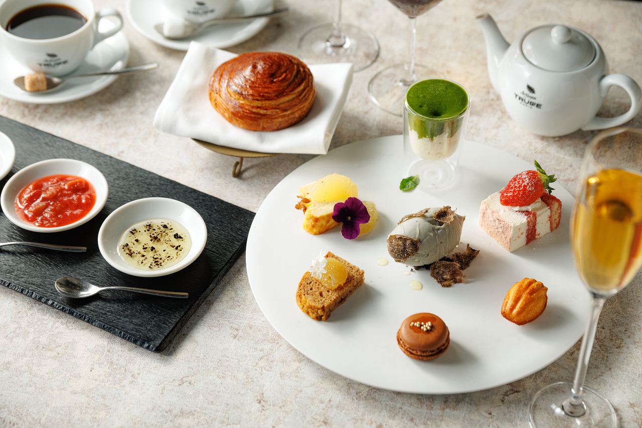 お料理はトリュフをふんだんに使用したフレンチで、アミューズ、前菜の後のメインはその日の気分に合わせて好きなものが選べます。デザート付きで1人1皿提供のコースで優雅にお楽しみ頂けます。