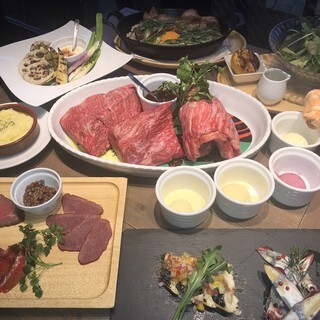 Our restaurant's best premium course with an assorted main dish of 5 types of steaks, such as aged Japanese black beef sirloin and zabuton.