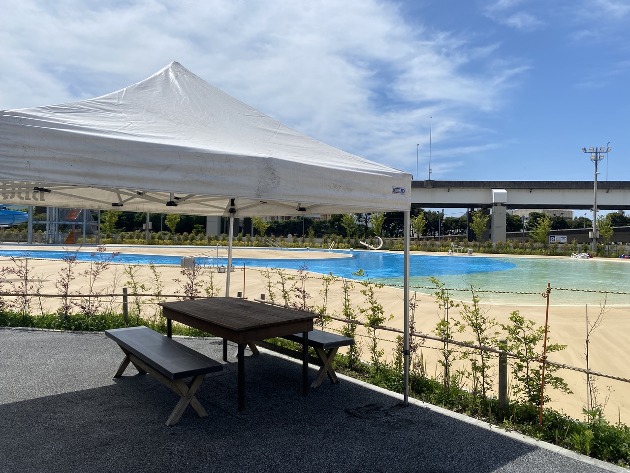 お席や場所のみのご利用“レンタルテントブース(プールシーズン)”&“キャンプサイト6×6m(プールシーズン以外)”