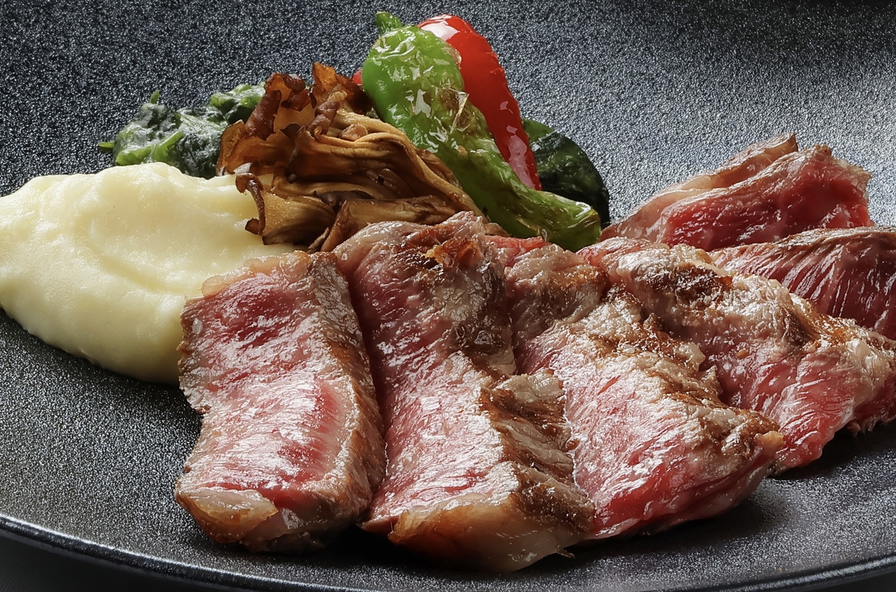 Enjoy a special dinner featuring T-bone steak. This exquisitely aged beef is made from USDA (United States Department of Agriculture) Prime-certified beef, and is dry-aged to create the finest aged meat. Enjoy this aged T-bone steak, rich in flavor thanks to its long aging process. (Main steak per person: T-bone course: approximately 180g, Osaka course: approximately 250g)