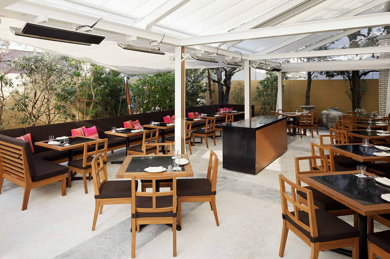 Unlike typical high-counter seats, these seats are made with the same height as the dining tables allowing for more comfort and view of the outside area.