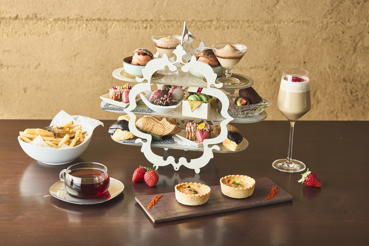 苺とチョコレート、抹茶が織りなす季節限定アフタヌーンティー。華やかな苺スイーツに、スモークサーモンのキッシュやトリュフ香るポテトなどのセイボリーを添え、甘さと塩味のバランスを楽しめる優雅なティータイムをご提供します。