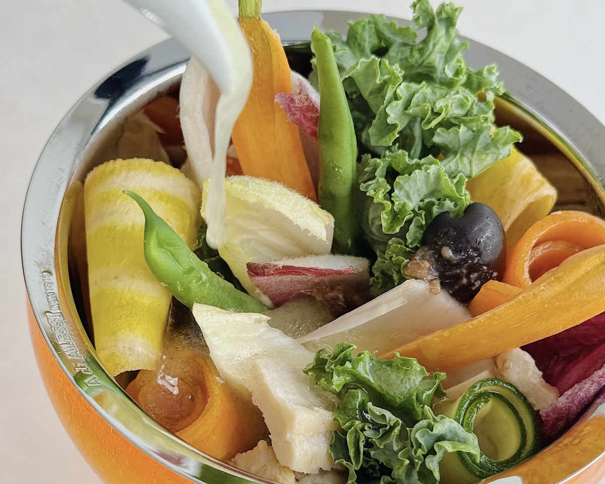 Niçoise‐style salad in a glass—veg & ice cream marriage