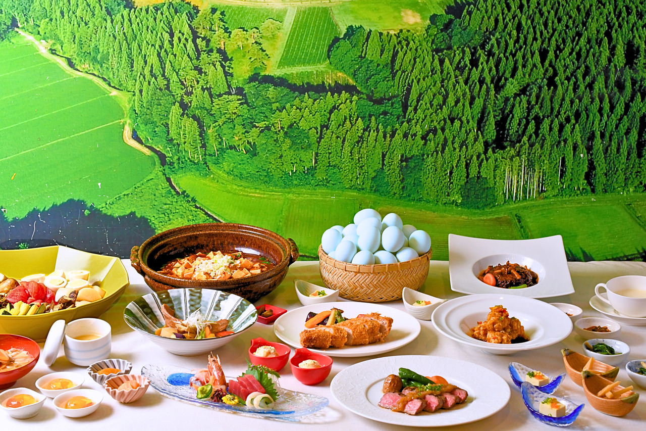 This is a half-buffet where you can choose one main dish. Please enjoy the buffet made with carefully selected ingredients from our directly managed farm, Tohoku Bokujo.