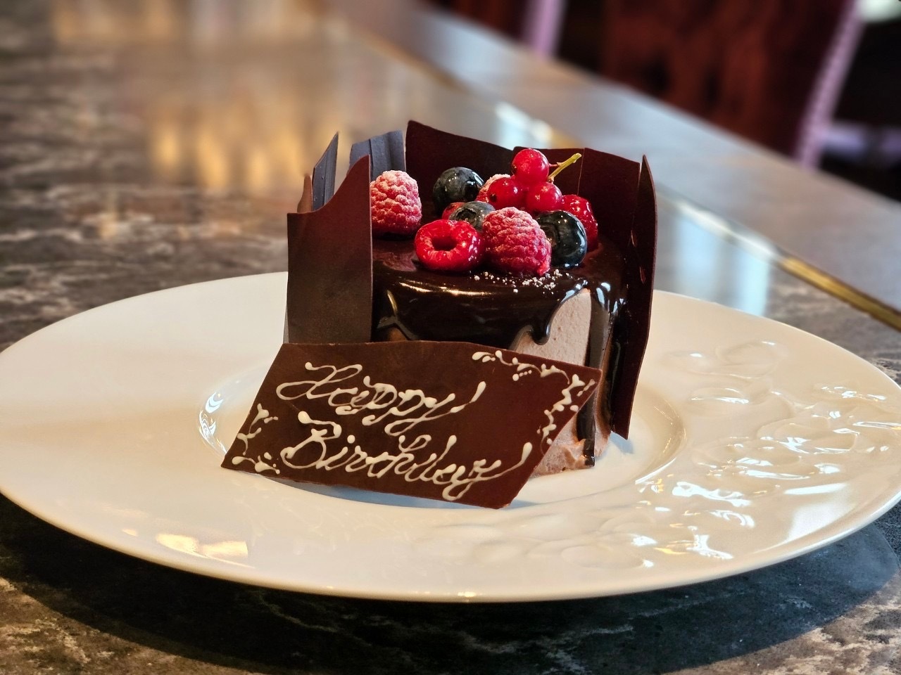 Chocolate plate messages available.