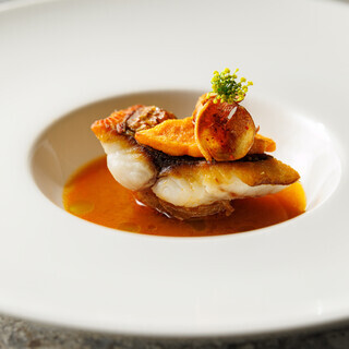 サワラのポワレ 伊勢志摩産フカヒレとサメタレ 和牛コンソメと共に